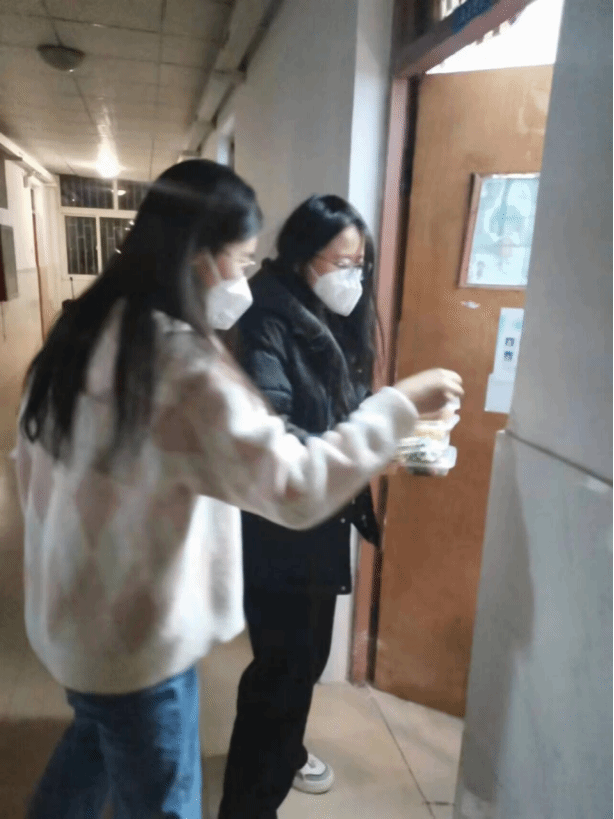 我的工作内容是负责所在宿舍楼的取餐及本班女生的分餐。为避免人员聚集,每班志愿者须分时段取餐,且人数不超过两人,两个人提着装满三四十份饭菜和米饭上五楼,也确实不是件容易的事,但在给每个宿舍分完餐后,大家都会说:"谢谢你们,辛苦啦。"那一刻,所有的疲惫都转为我为同学们服务的动力,能够尽我的微薄之力帮助同学们,我感到非常开心。我相信,在全体师生、后勤保障人员的共同努力下,齐心战疫,共克时艰,我们一定会迎来光明的未来!